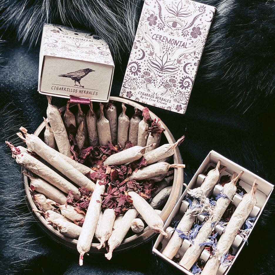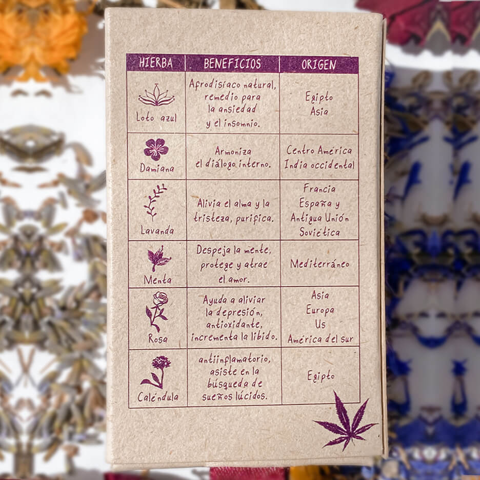 Cigarros herbales hechos a base de plantas medicinales y aromáticas, Cien por ciento orgánicos, sin químicos y libres de nicotina.