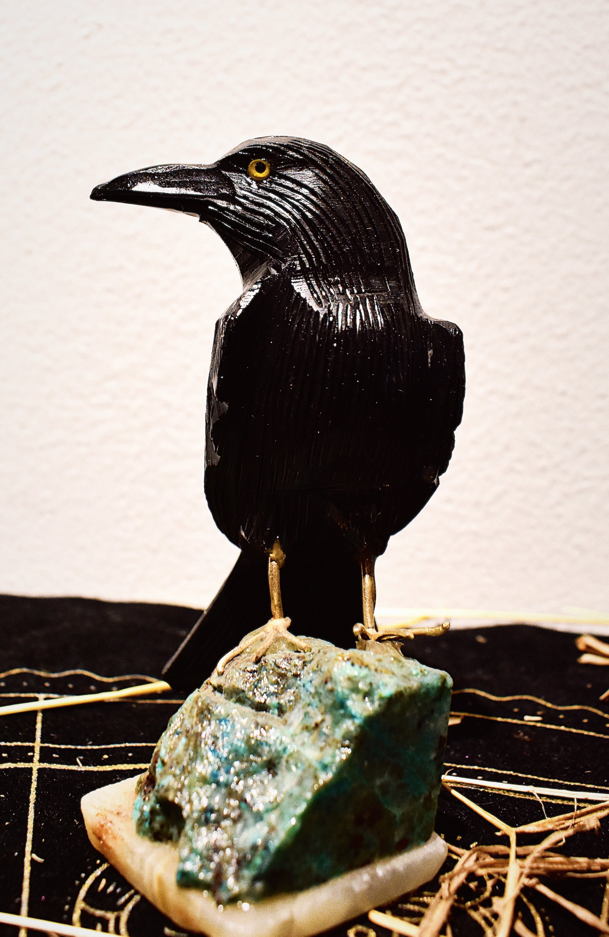 Conéctate con la energía ancestral del cuervo con esta impresionante escultura tallada en obsidiana, una piedra volcánica de gran poder protector y transmutador. Representando la sabiduría, la intuición y la conexión con el mundo espiritual, este cuervo es una pieza única ideal para altar, rituales o como un amuleto de protección.