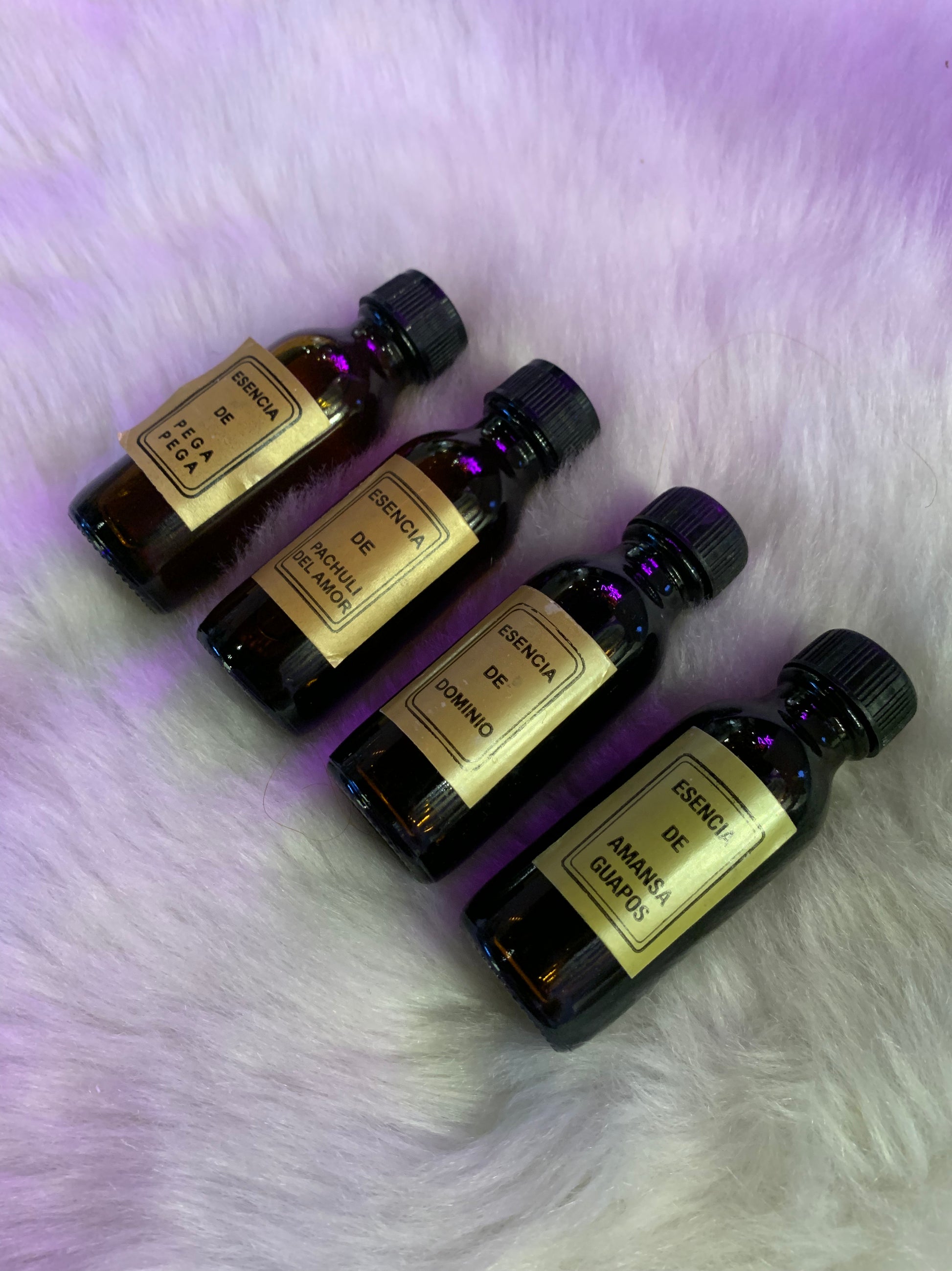 Ven a Mí: Esencia utilizada para atraer a una persona específica, ya sea en el amor o en relaciones personales. Se emplea en rituales para fortalecer vínculos afectivos y despertar el interés de alguien en particular.