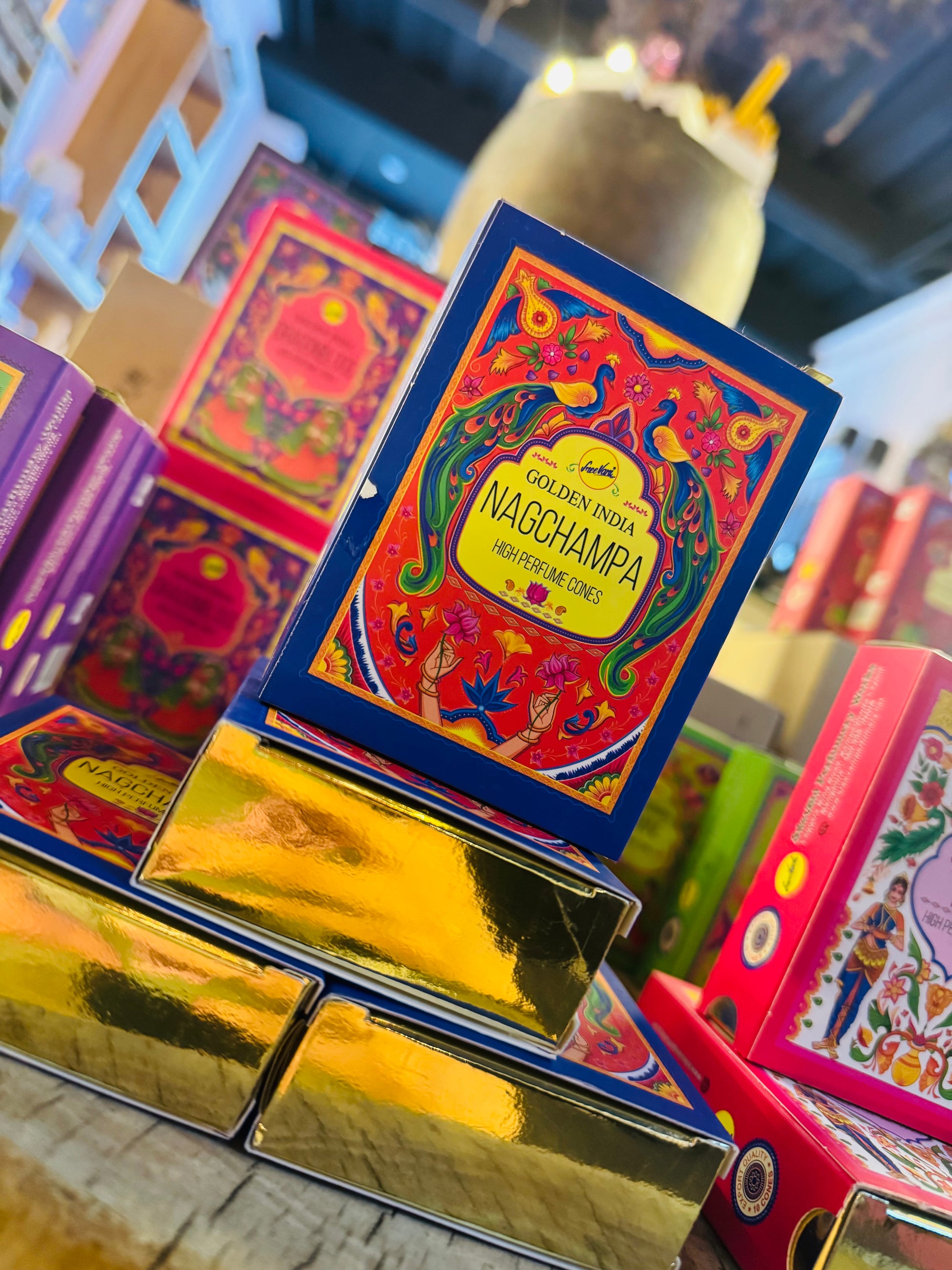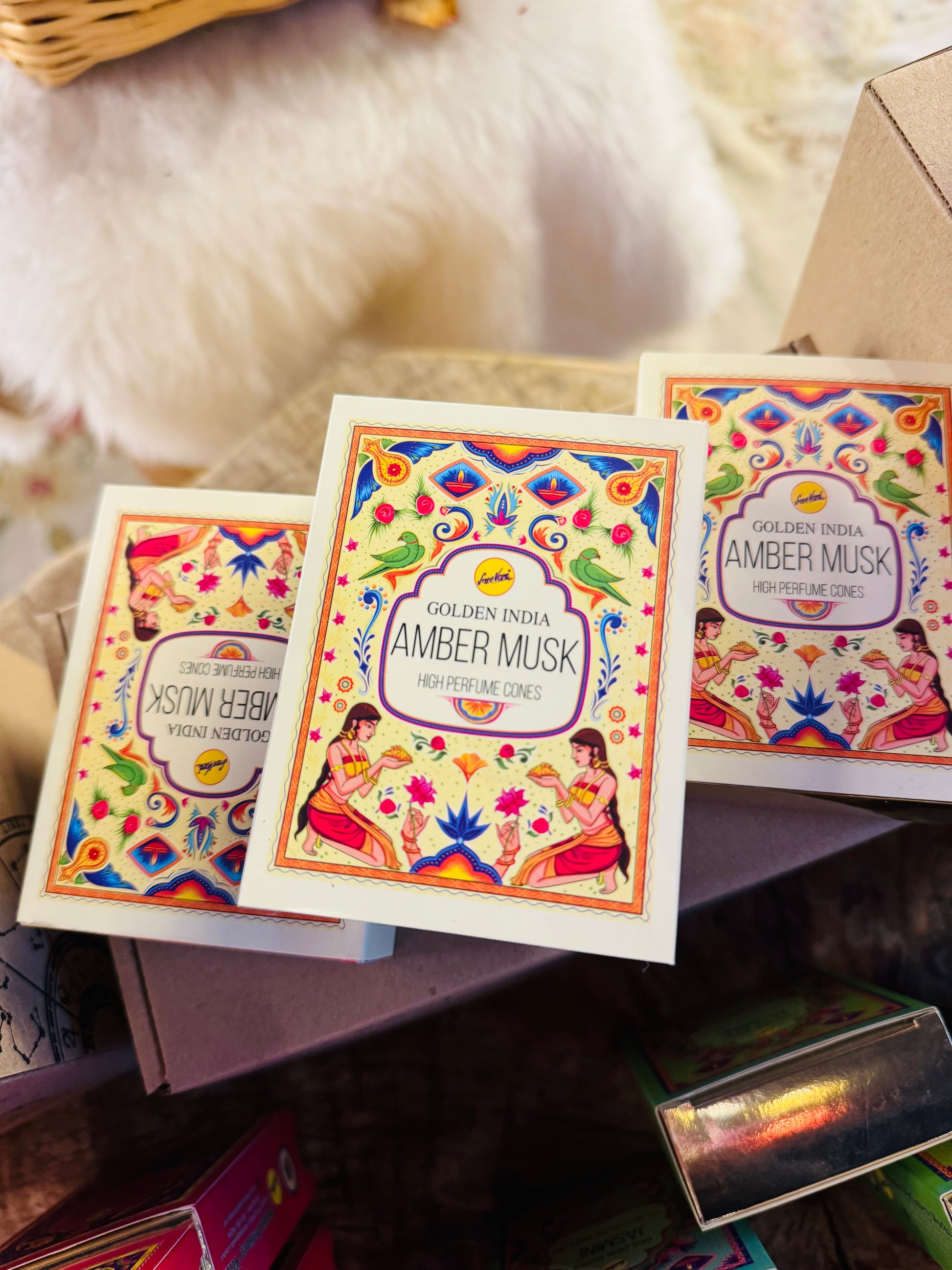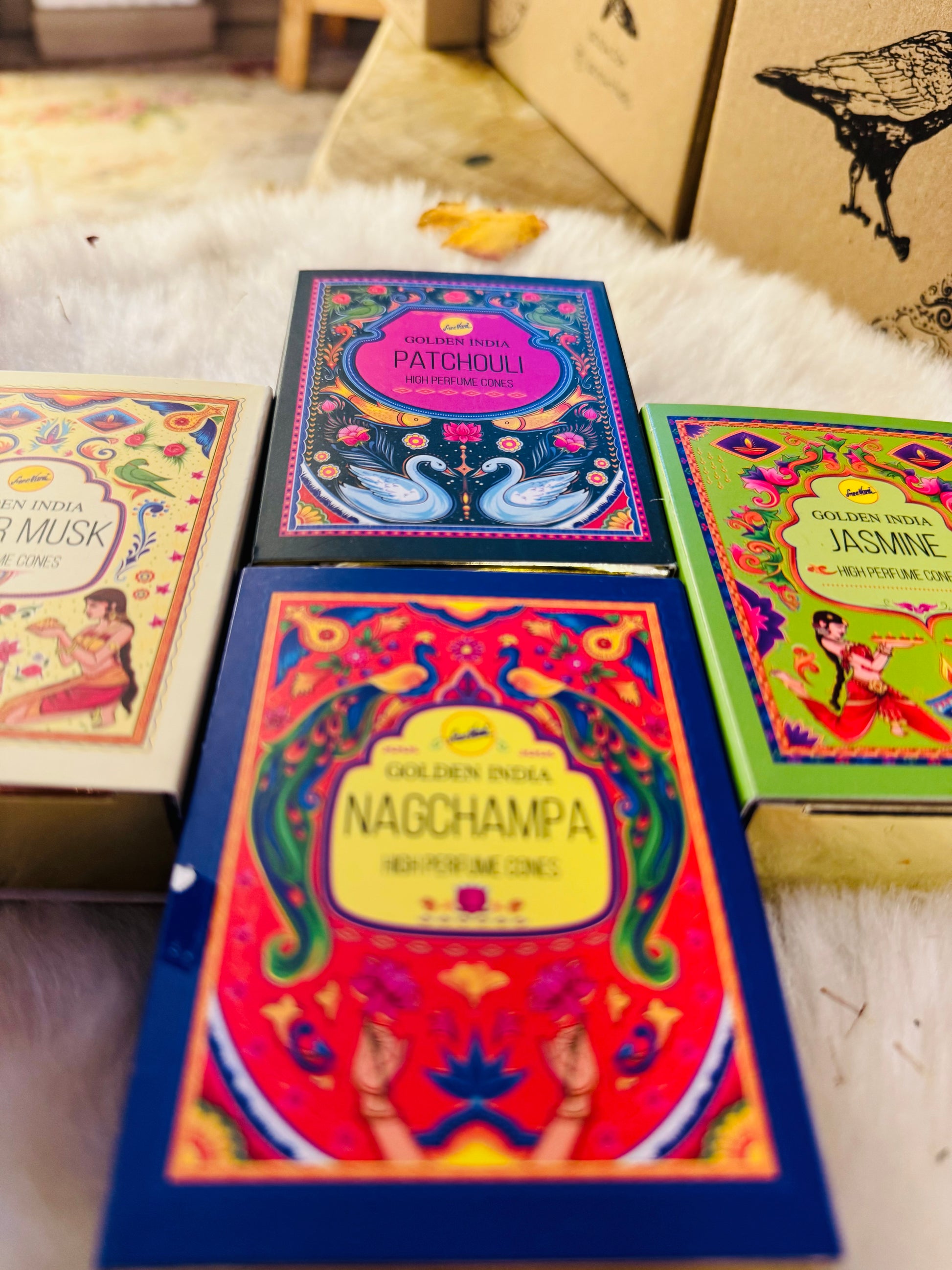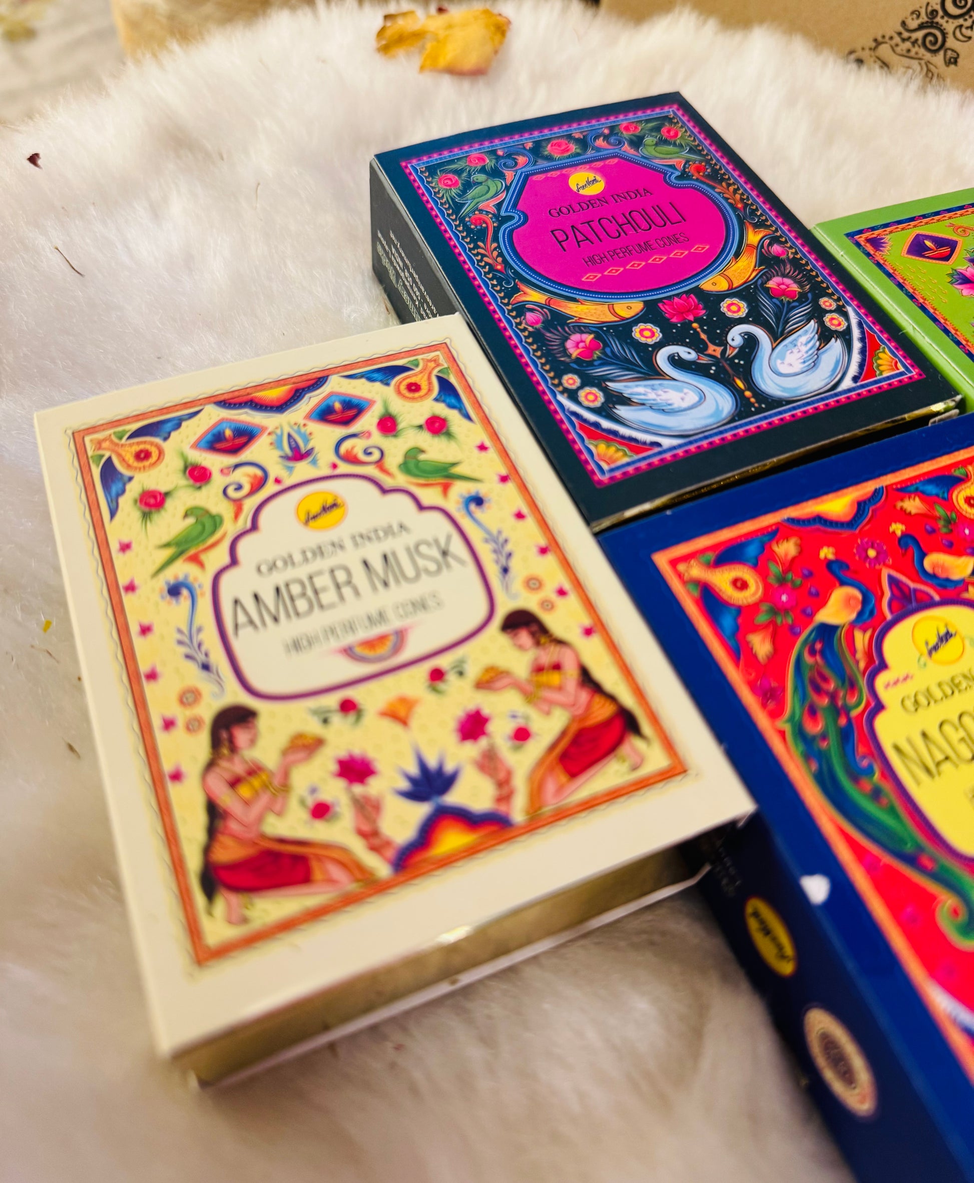 Estos inciensos en forma de conito están hechos con resinas naturales, maderas sagradas y esencias de alta concentración. Cada aroma tiene una intención distinta: desde limpieza energética hasta atraer calma, amor o abundancia.
