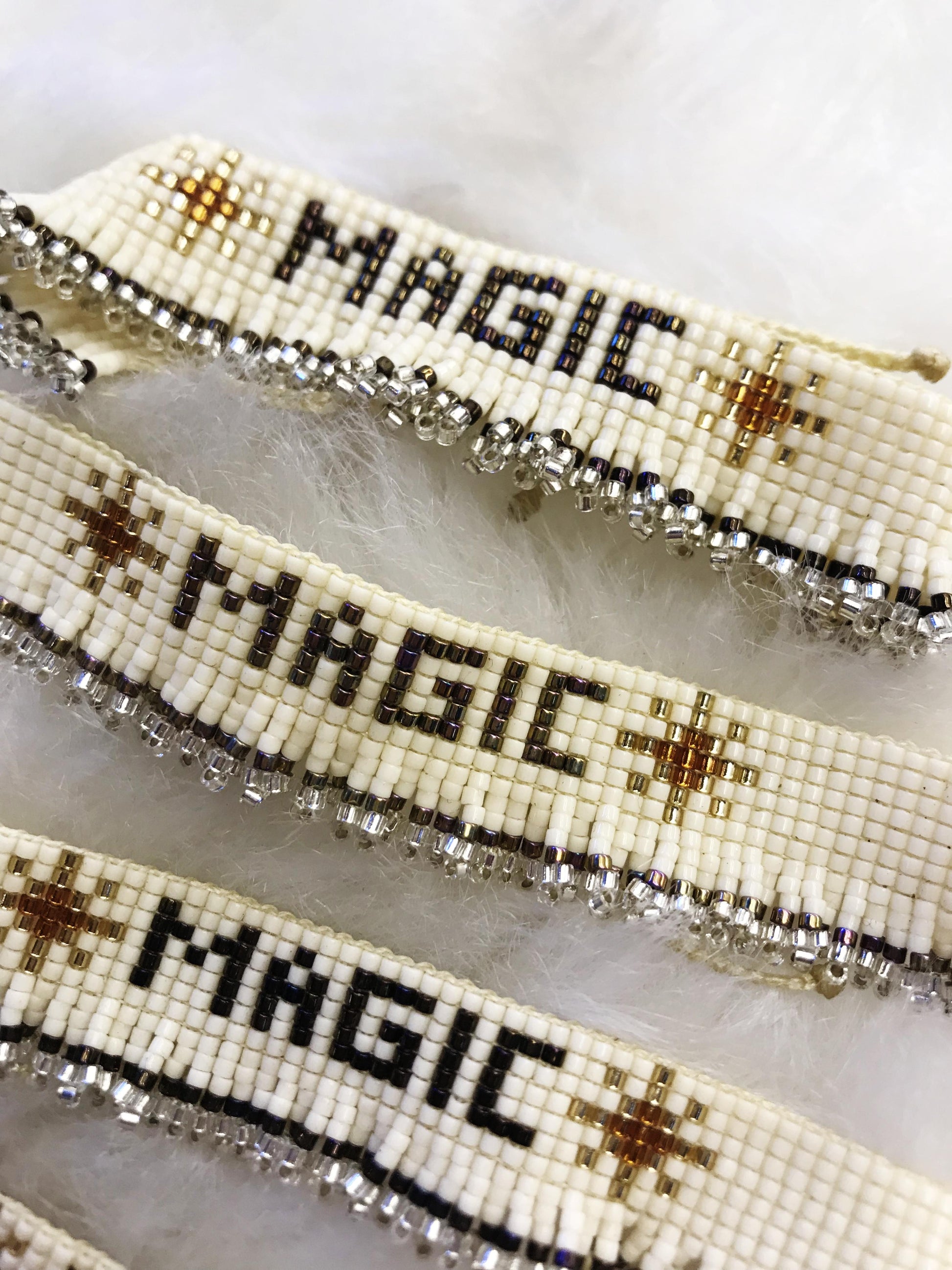 Pulsera artesanal única hecha en cristales Miyuki por mujeres talentosas de la comunidad indígena en el Putumayo, para LaCrowRituals.