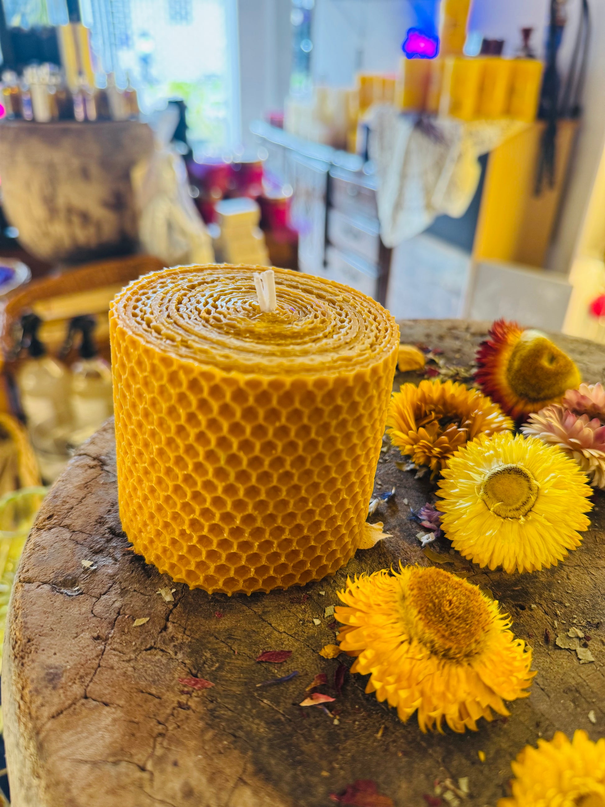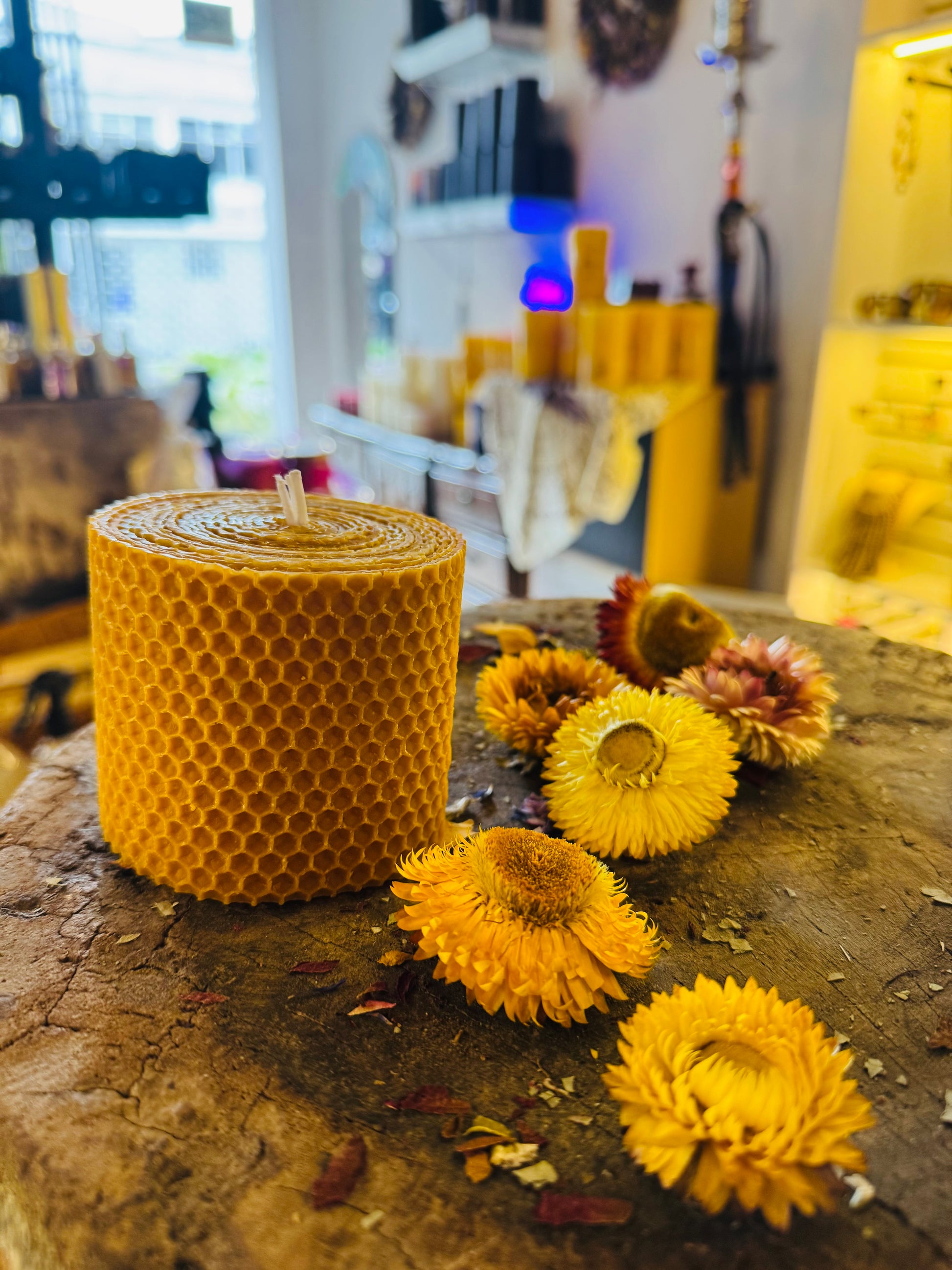 Hecho con cera de abeja pura, este velón es ideal para atraer energías positivas hacia tu vida: amor, bienestar, armonía y prosperidad.